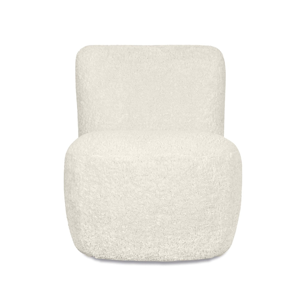 Dossier ergonomique, assise moelleuse, recouvert de tissu texturé bouclette. Le fauteuil Eve se glisse partout grâce à son petit format, tout en ne concédant rien au confort spécialement conçu pour les adeptes du slowlife. Repose-pied vendu séparément.