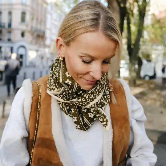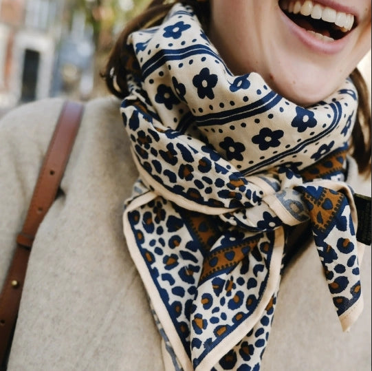 Découvrez "Mon Grand Indispensable" avec son iconique imprimé léopard. Confectionné en 100 % coton doux, il assure confort et légèreté tout au long de la journée. Sa fleur signature apporte une touche unique qui souligne votre style avec caractère. Chaque foulard est fabriqué à la main selon la tradition indienne du block print, utilisant des pigments naturels pour une authenticité assurée. Polyvalent et élégant, cet accessoire vous accompagne partout.