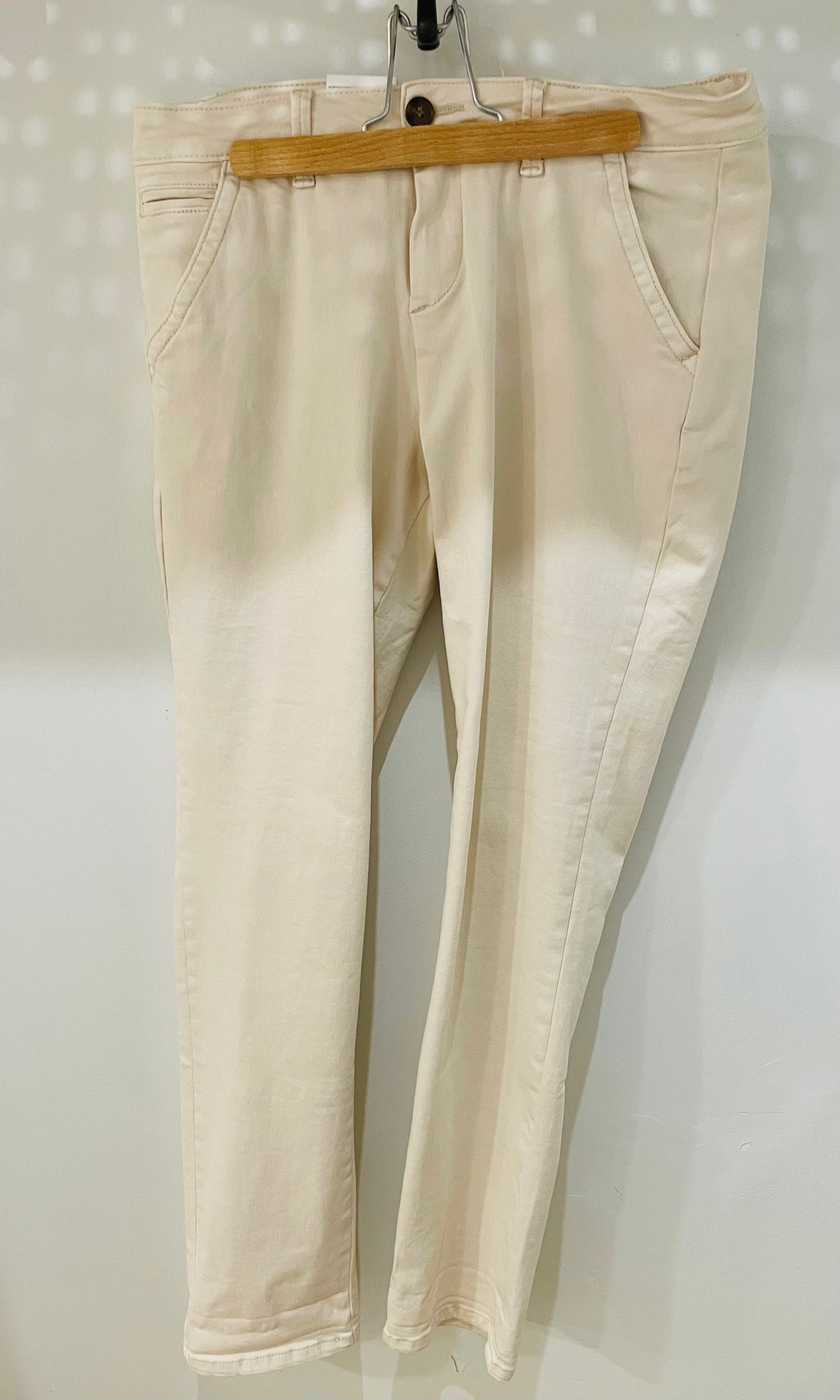 Ces chino Emy en coton élasthanne sont hyper confortables. Parfait pour un look polyvalent et décontracté. Fabriqués en coton de haute qualité, ils vous accompagneront toute la journée avec aisance et style. Choisissez le confort sans compromis avec les pantalons Emy.