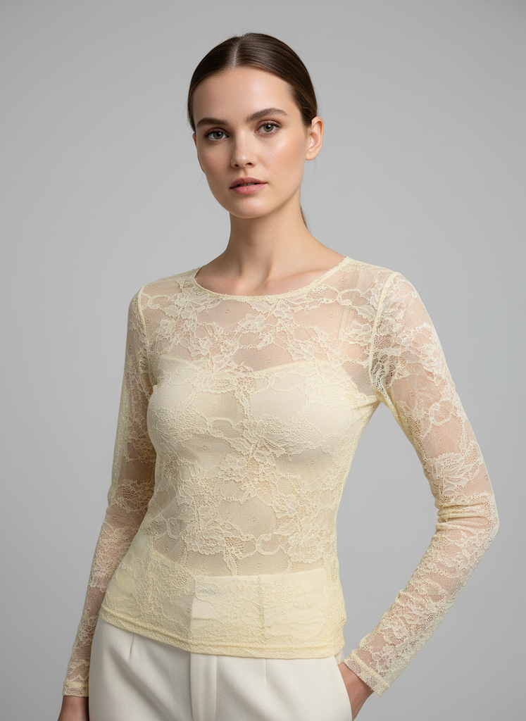 Top en dentelle stretch aux manches longues qui épouse délicatement vos formes. La matière extensible offre un confort optimal tout au long de la journée, tandis que la dentelle raffinée crée une silhouette élégante et féminine. Parfait pour sublimer vos tenues du quotidien ou pour des occasions spéciales. Un incontournable de la garde-robe moderne qui allie style et bien-être.